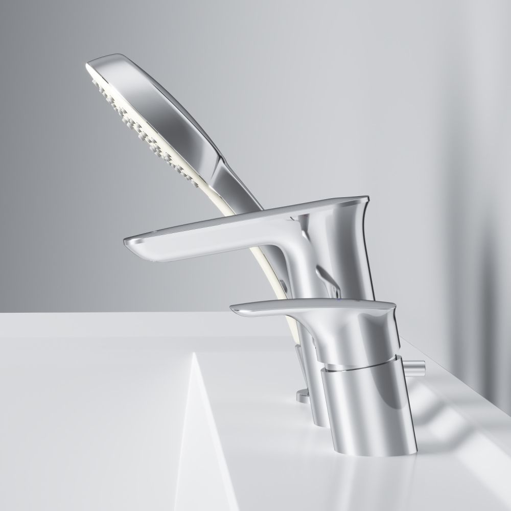 Уникальное решение: смеситель оборудован ручным душем для того чтобы вы могли оценить все преимущества SPA прямо у себя дома. Три режима ручного душа: Spray EnerJet Spray + Massage переключатель режимов Simple Switch Push. Удивительно тактильный ручной душ за счёт материала поверхности soft touch. Функция Rub&Clean для легкой очистки душевых форсунок. Идеальное соотношение пропорций: средняя высота излива и премиальный размер ручного душа обеспечивают максимальный комфорт использования.