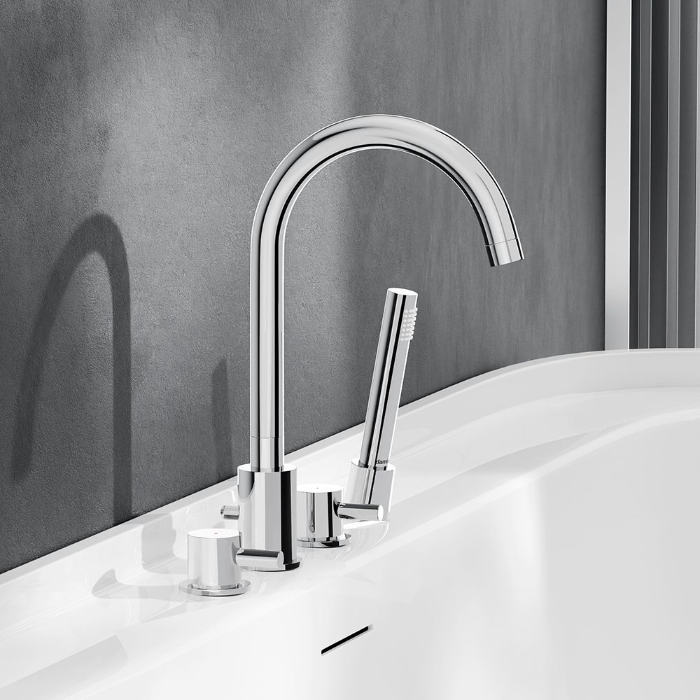 4х-секционный смеситель монтируемый на борт ванны – это не только яркий акцент но и идеальное решение для отдельностоящей ванны. А ручки и лейка в трендовой форме стика привнесут особую эстетику в интерьер ванной комнаты.