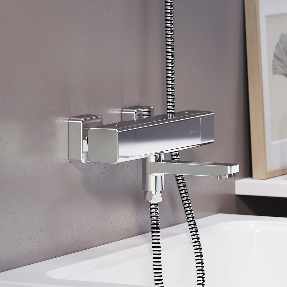 Максимальная безопасность: термостатический картридж 35мм обеспечивает точную настройку температуры и напора воды. Специальная кнопка-предохранитель не позволяет случайно повысить температуру воды. Выставляйте комфортные для вас параметры легким поворотом правой ручки смесителя. Переключайте потоки воды между лейкой и изливом плавным поворотом излива на 90 градусов.