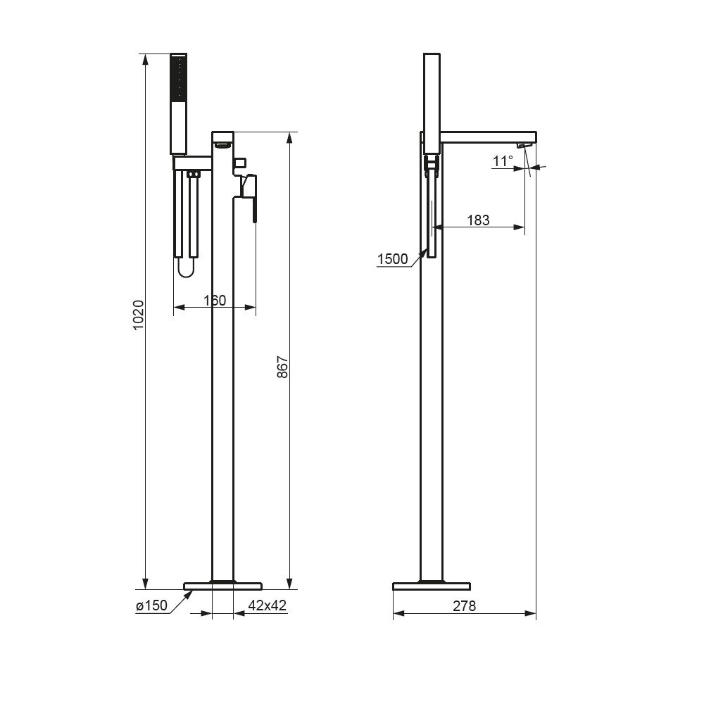 Смеситель дополнен ручной лейкой для душа. Переключайте потоки воды между лейкой и изливом плавным поворотом дивертора.
