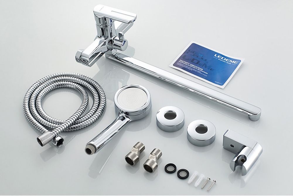 Свойства. Артикул: L2266; Бренд: Ledeme; Коллекция: H66; Назначение: для ванны с душем, универсальный; Управление: рычажное; Тип: смеситель; Монтаж: на стену; Помещение: ванна; Цвет: хром; Поверхность: глянцевая; Форма: округлая; Стилистика дизайна: современный стиль; Материал: латунь; Расположение рычага: сверху; Количество потребителей: 2 потребителя; Наличие излива: есть; Расположение излива: снизу; Форма излива: традиционная,l-образные; Вращение излива: поворотный; Длина излива, см: 40.