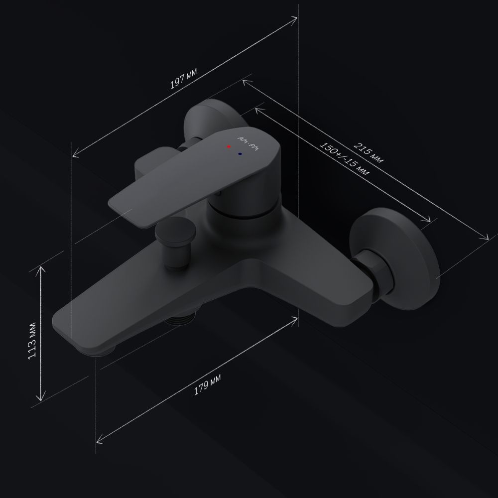 Свойства. Бренд: AM.PM; Коллекция: Gem; Продукт: Смеситель для ванны и душа; Артикул: F90A10022; Глубина изделия(мм): 197; Ширина изделия(мм): 215; Высота изделия(мм): 120; Вес брутто (кг): 44563; Страна производства: Германия; Страна бренда: Германия; Гарантия: 10 лет; Материал: латунь; Цвет: черный; Назначение: для ванны и душа; Тип управления: однорычажный; Количество монтажных отверстий: 2; Тип монтажа: на стену; Поворотный излив: нет; Излив для ванны: есть; Rub&Clean: нет; Эксцентрики: есть; Декоративные части: декоративные чаши; Переключатель / Вентиль: есть; Аэратор: да; картридж: керамический картридж SoftMotion 35мм; Обратные клапаны: есть.