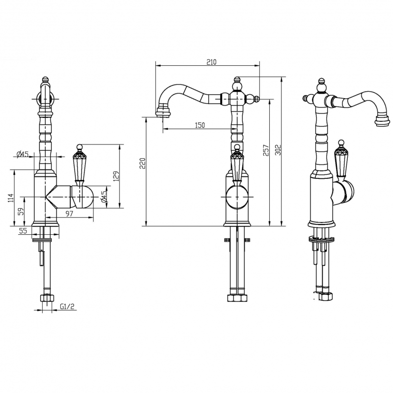 Смеситель для раковины Boheme Imperiale Presente 322 Золото