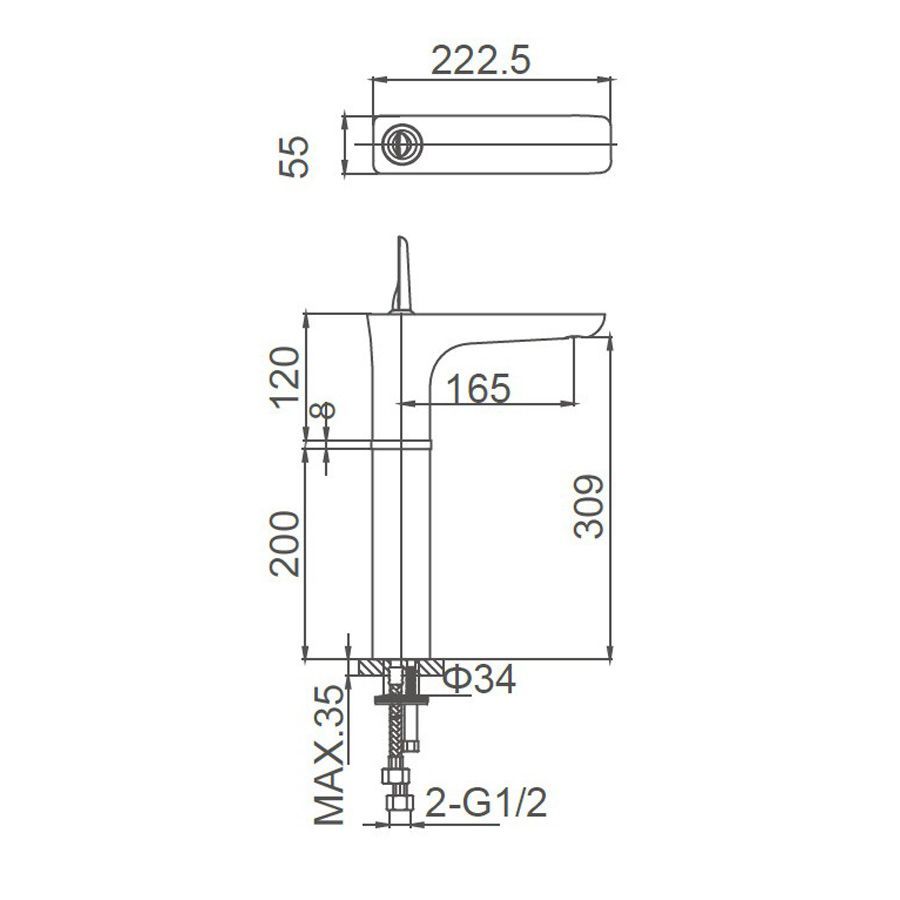 - Комплектация: Смеситель / Гибкая подводка / Монтажный комплект