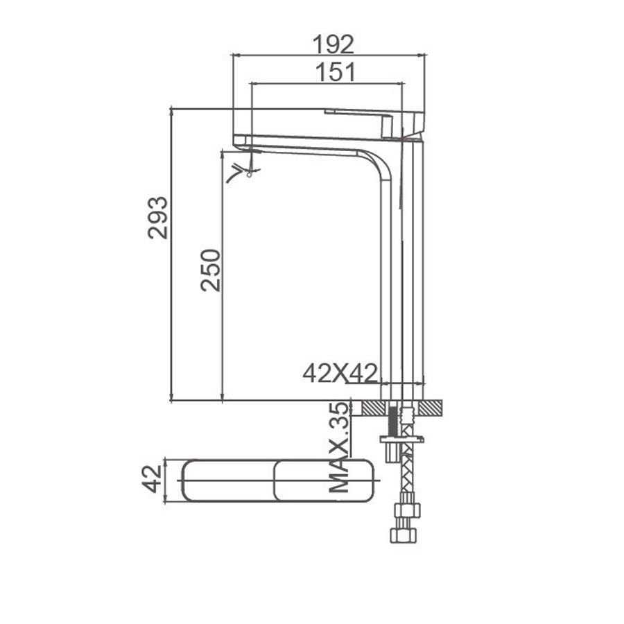 - Комплектация: Смеситель / Гибкая подводка / Монтажный комплект