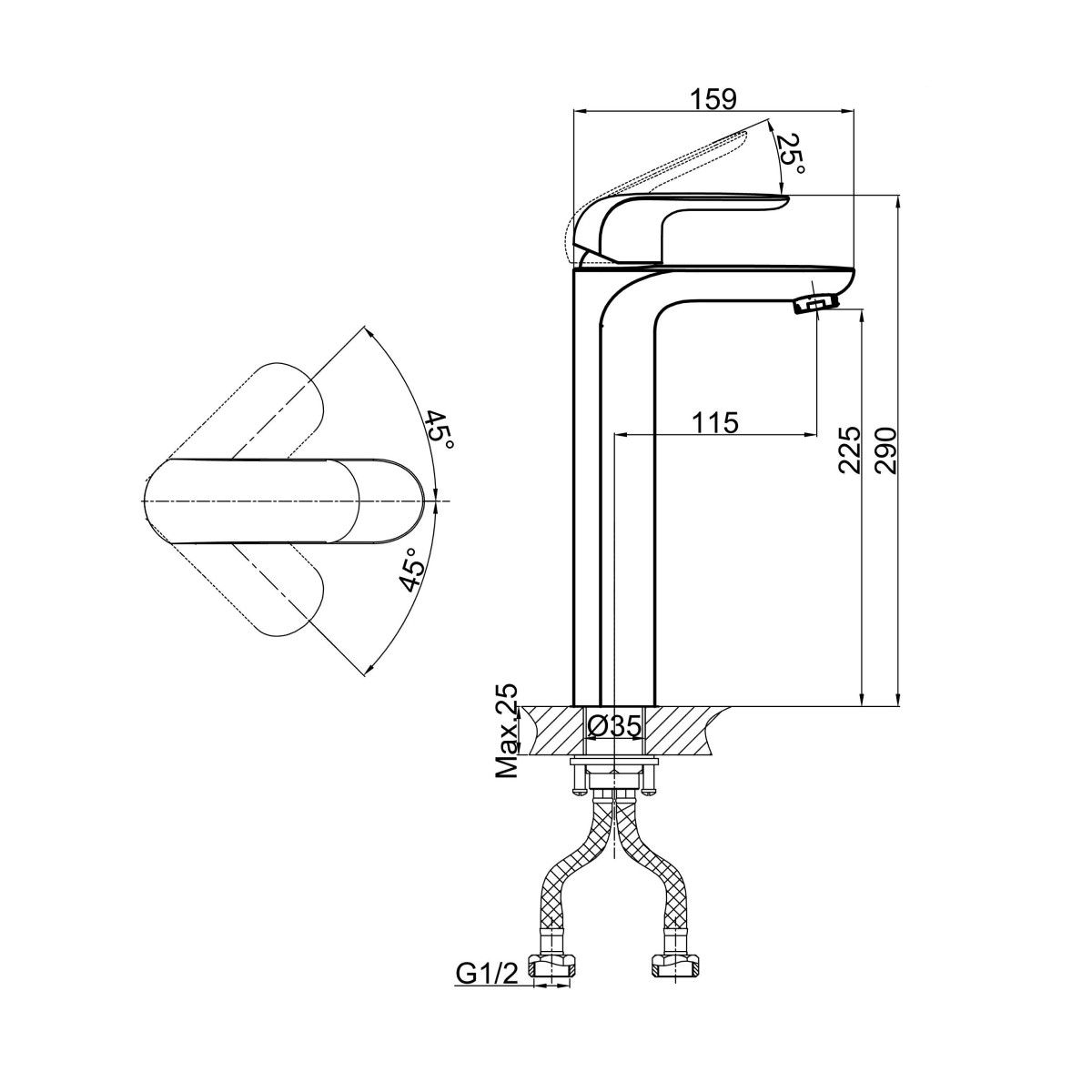 - Гибкая подводка 40 см идёт в комплекте для быстрой установки.