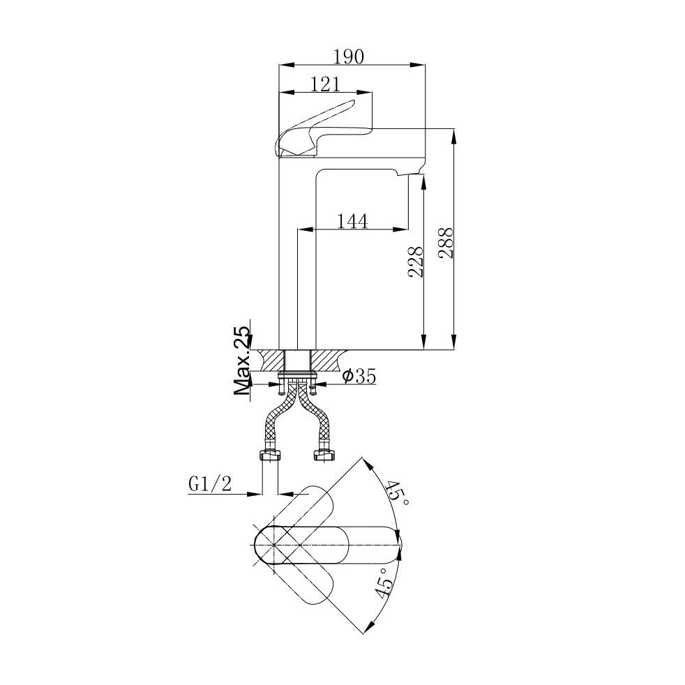 - Гибкая подводка 40 см идёт в комплекте для быстрой установки.