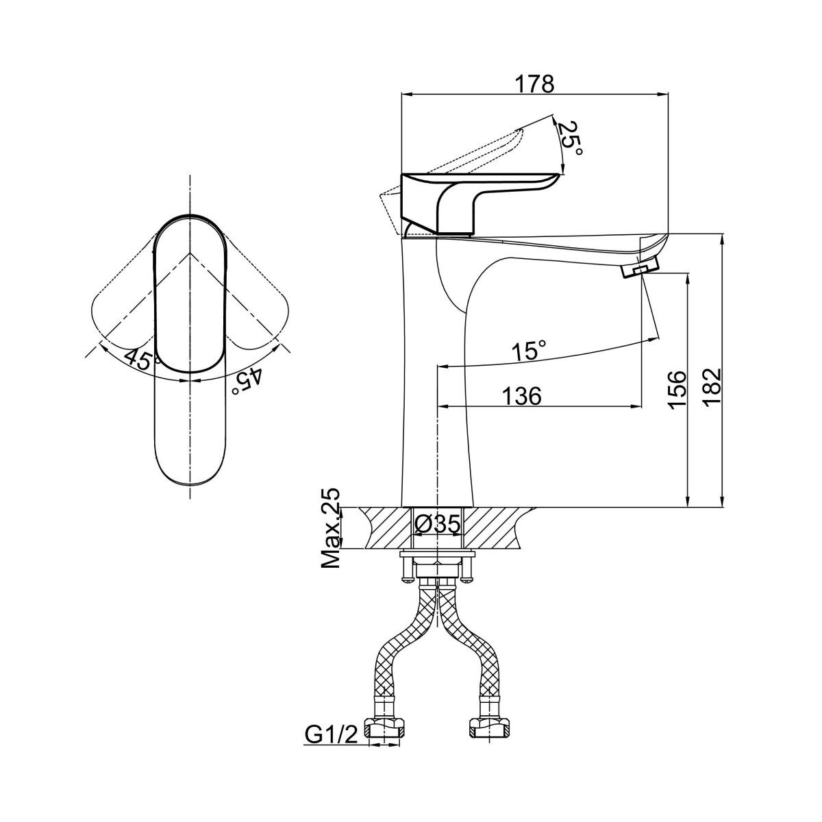 - Гибкая подводка 40 см идёт в комплекте для быстрой установки.
