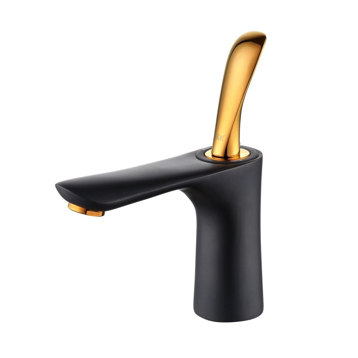 Правильная геометрия, идеальный пример минимализма и современного дизайна в ярком сочетании черного и золотого цветов для ванной комнаты.