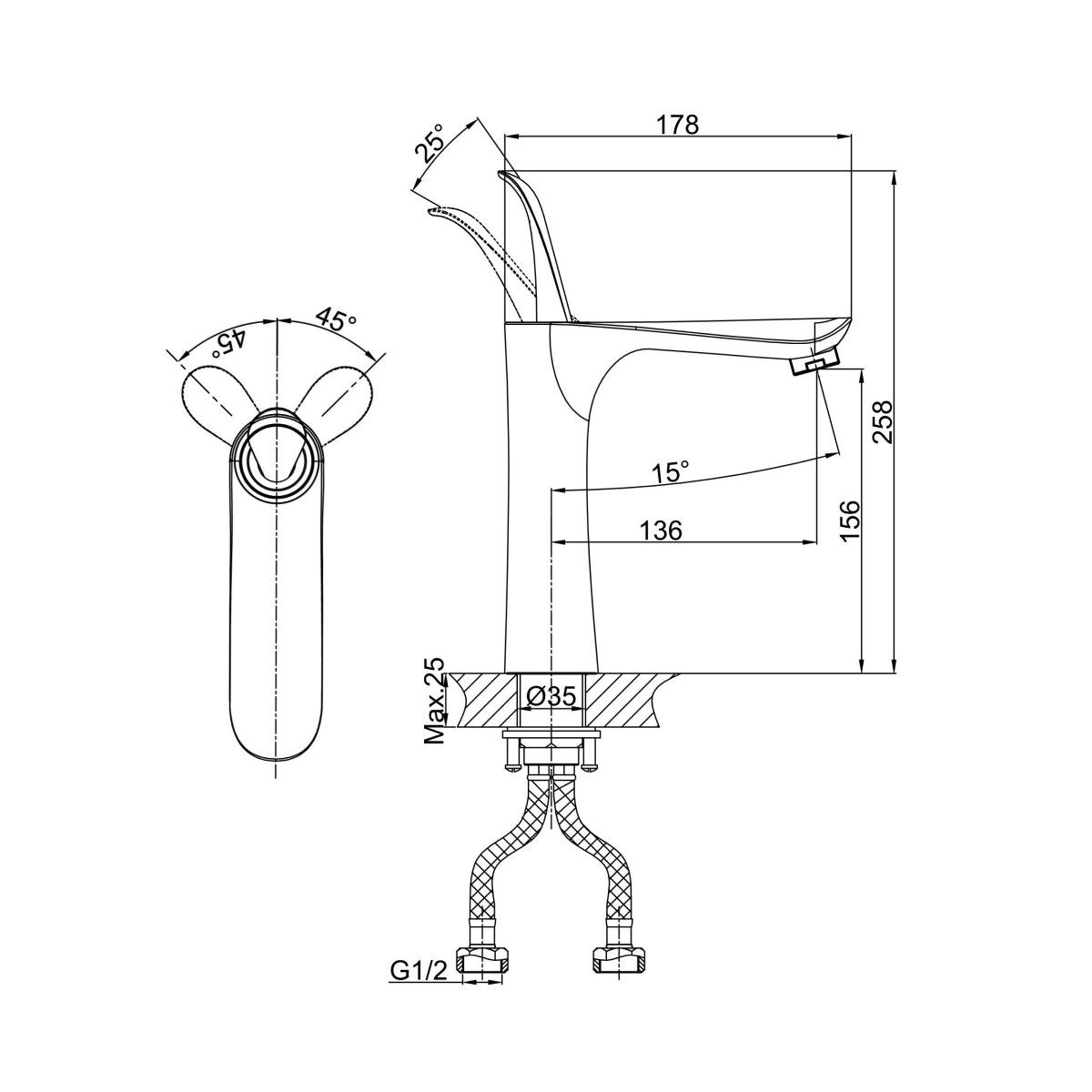 - Гибкая подводка 40 см идёт в комплекте для быстрой установки.