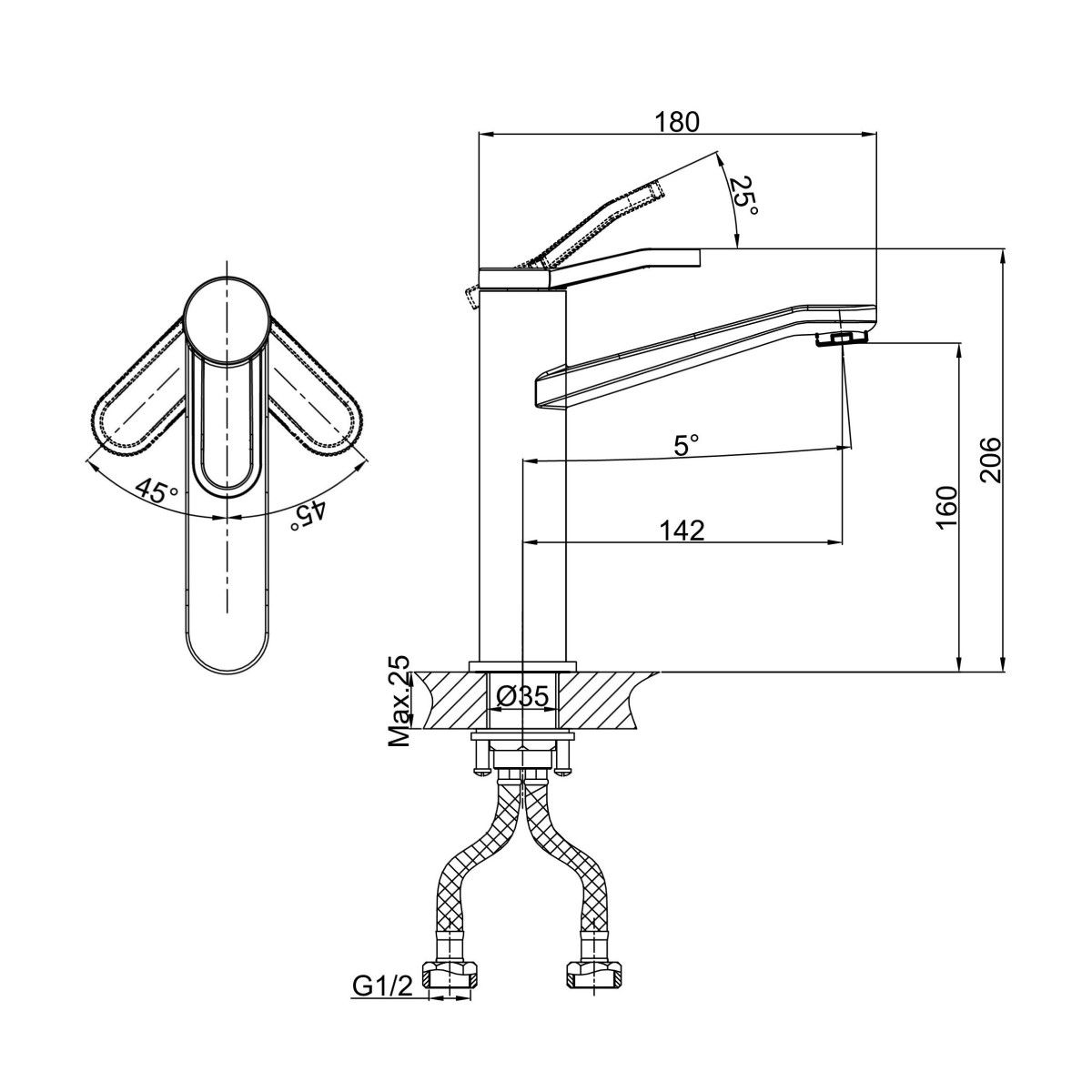 - Гибкая подводка 40 см идёт в комплекте для быстрой установки.