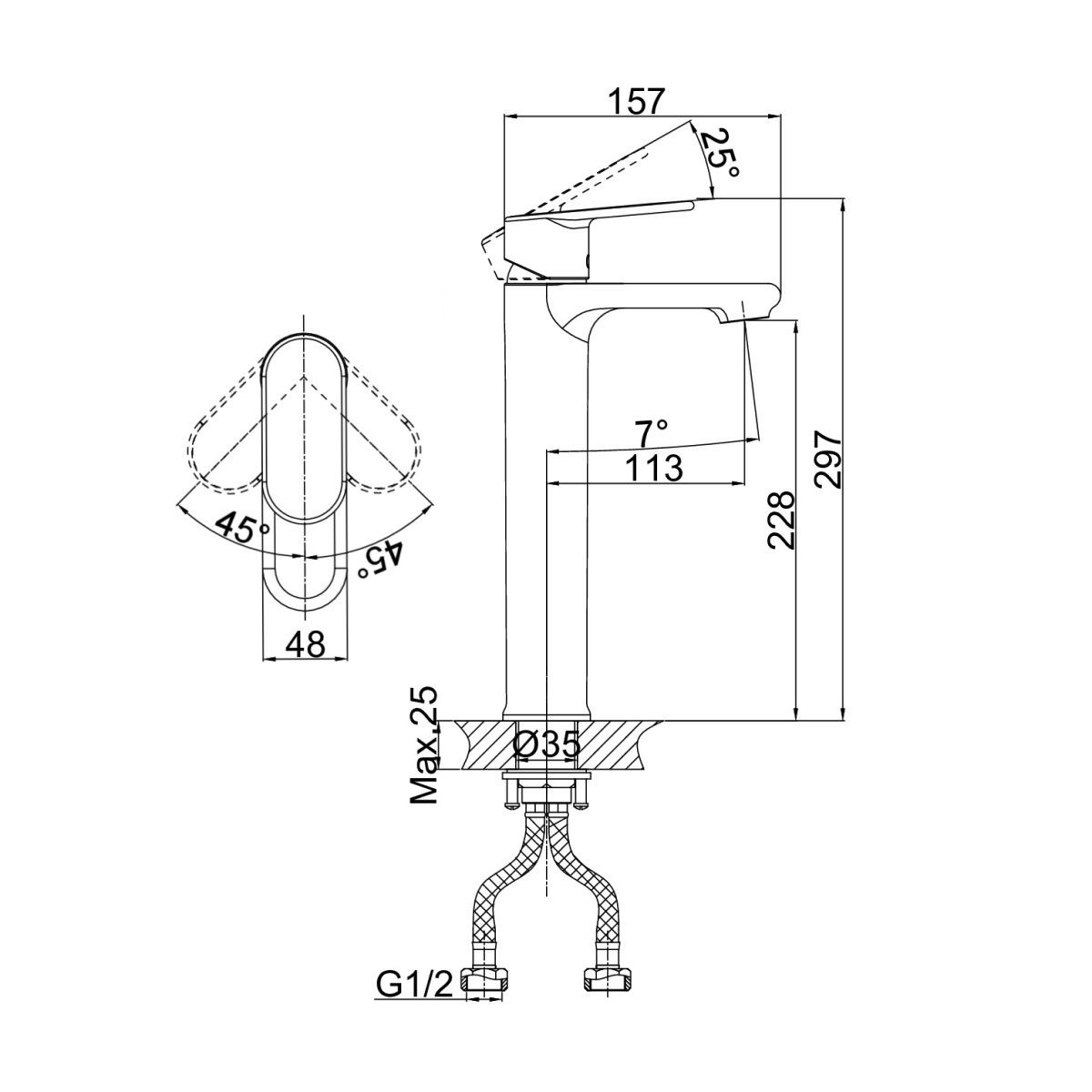 - Гибкая подводка 40 см идёт в комплекте для быстрой установки.