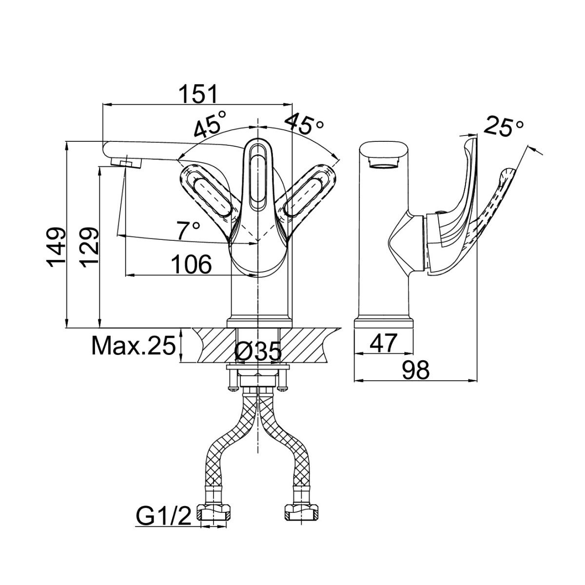 Смеситель, гибкая подводка-2шт, крепежная гайка, паспорт изделия |