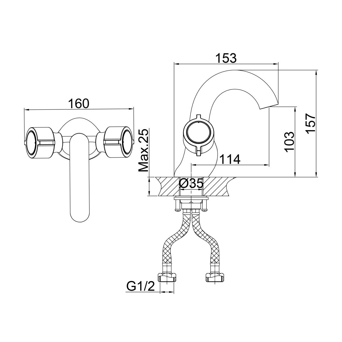Смеситель, гибкая подводка-2шт, крепежная гайка, паспорт изделия |