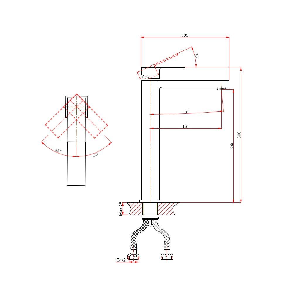 - Гибкая подводка 40 см идёт в комплекте для быстрой установки.