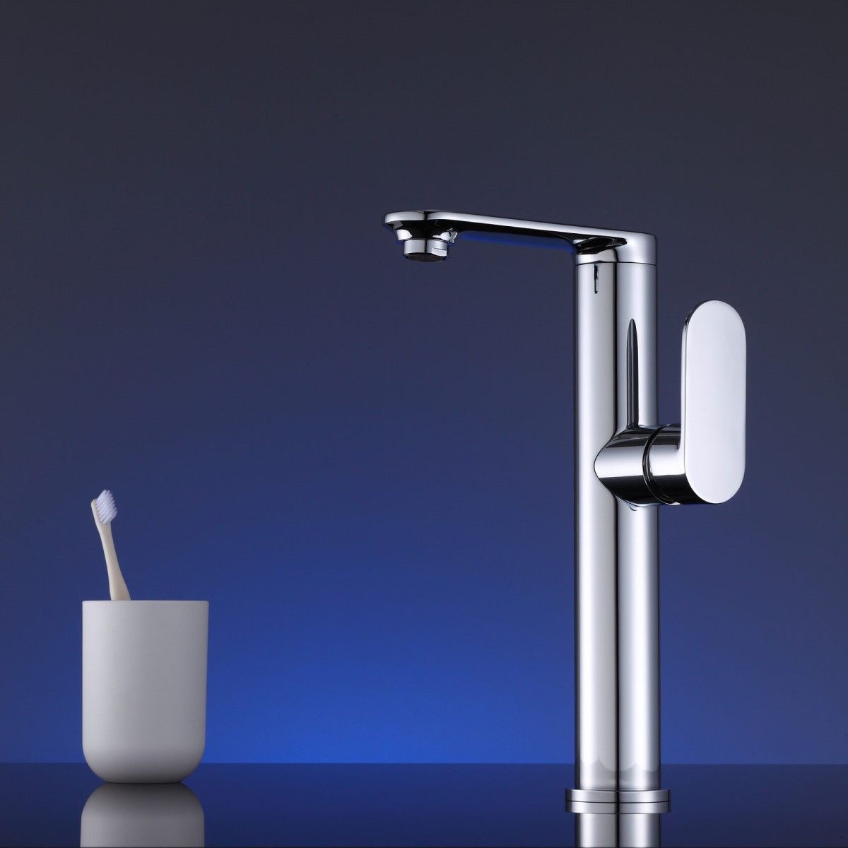 смеситель для умывальника высокий с поворотным изливом и регулируемым аэратором, H=294 мм