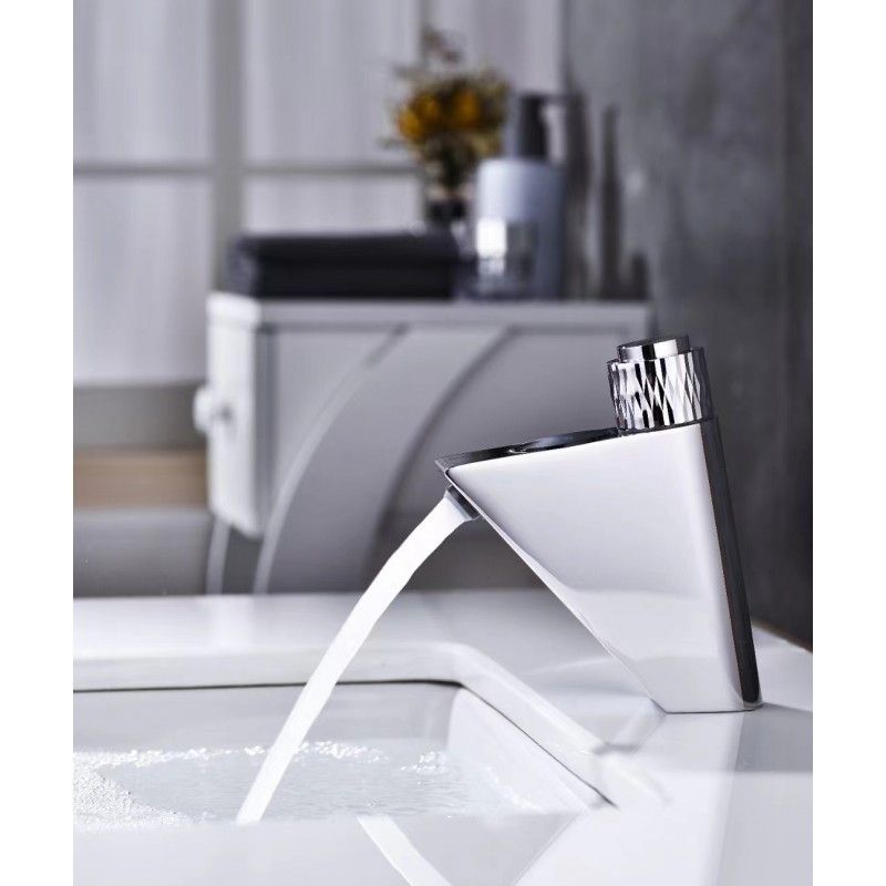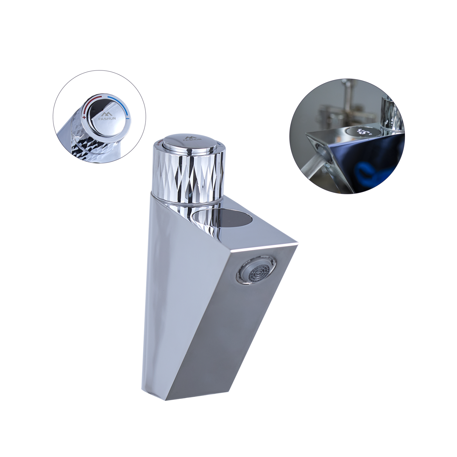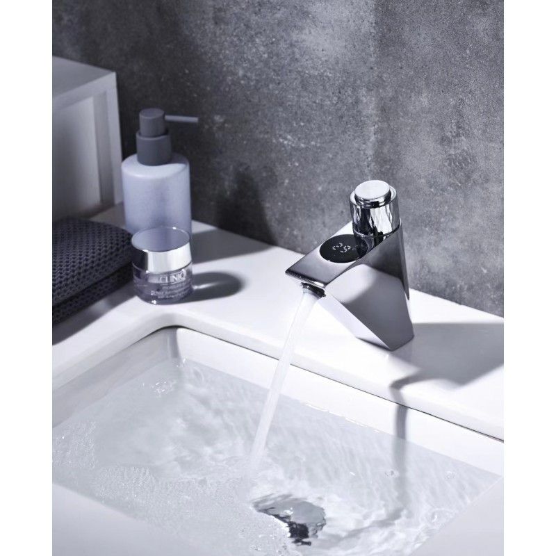 смеситель для умывальника с электронным дисплеем, кнопочным включением, регулировкой температуры поворотом ручки и регулируемым аэратором, H=155 мм