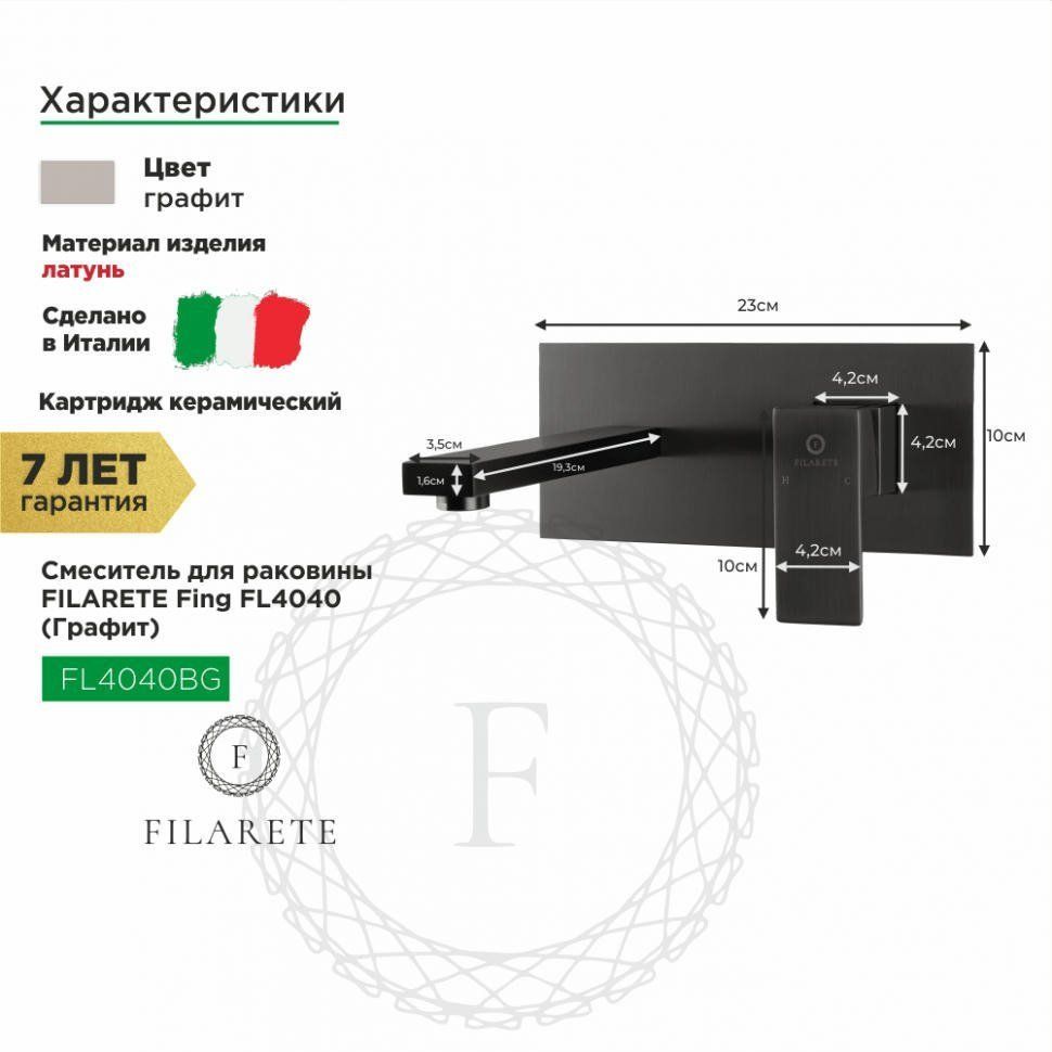 О бренде: Filarete - это бренд элитной сантехники, который воплощает в себе современные технологии, уникальный дизайн и высочайшее качество. Основанный в 2005 году, Filarete быстро завоевал признание среди ценителей роскоши и элегантности. Философия бренда заключается в стремлении к совершенству, постоянном обновлении ассортимента и обеспечении максимального комфорта для своих клиентов. Ассортимент Filarete включает в себя широкий спектр изделий, от ванн и душевых кабин до смесителей и аксессуаров. Отличительной особенностью бренда является его стремление к инновациям и использование самых передовых технологий. Все изделия Filarete проходят строгий контроль качества, что гарантирует их надежность и долговечность. Дизайн сантехники Filarete отличается своей изысканностью и элегантностью. Бренд активно сотрудничает с ведущими мировыми дизайнерами и архитекторами, что позволяет создавать уникальные изделия, которые станут украшением любого интерьера. Особое внимание уделяется деталям: каждый элемент сантехники Filarete выполнен с особым мастерством и вниманием к мелочам.