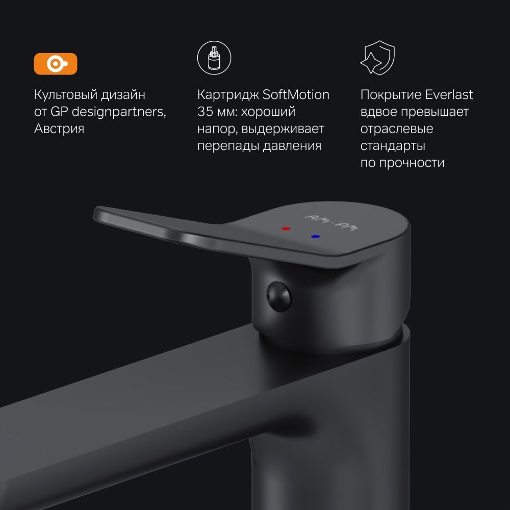 Смеситель X-Joy оборудован специально спроектированным для AM.PM керамическим картриджем SoftMotion 35 мм который обеспечивает оптимальную регулировку температуры а также позволяет выдерживать любые перепады давления.
