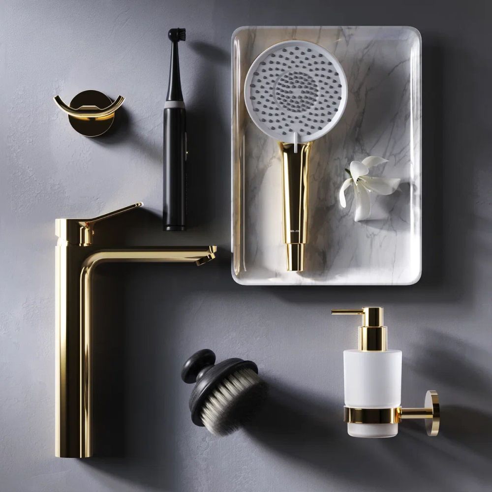 Настоящее произведение ювелирного искусства в вашей ванной комнате: корпус смесителя равномерно покрыт тончайшим слоем 24-каратного золота. Нанесение драгоценного финишного слоя выполнено методом вакуумного напыления в процессе которого микрочастицы золота образуют стойкое соединений с латунной основой.