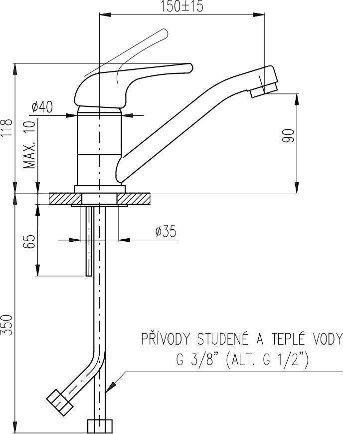 Свойства. Материал: латунь; Механизм: однорычажный; Цвет: хром; Высота, мм: 118; Длина излива,мм: 150; Тип излива: поворотный