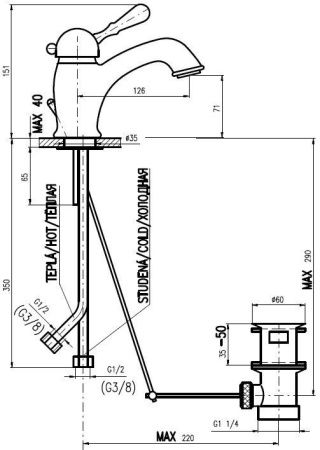 Смеситель для умывальника RAV Slezak Labe с донным клапаном L027.5SM