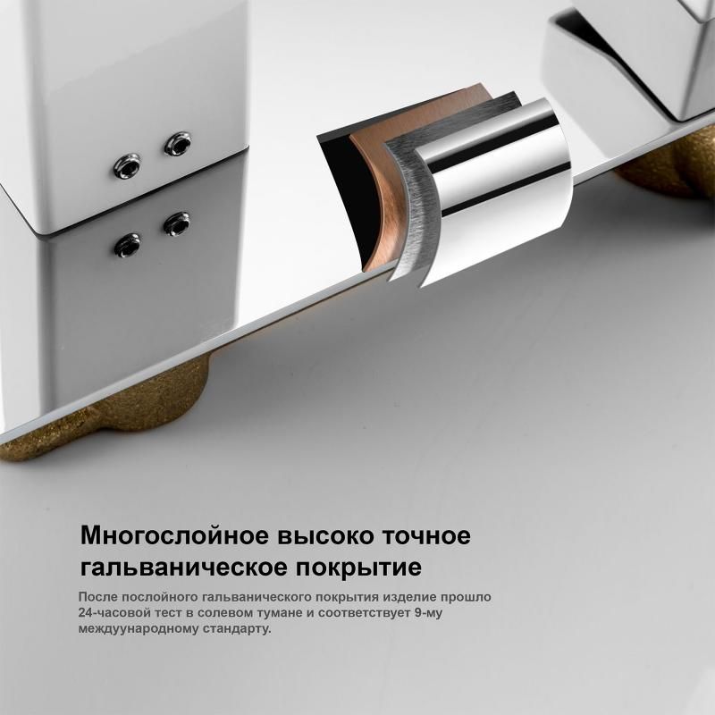 Корпус литой, кран не поворачивается. Саморезы и дюбеля на которые устанавливается конструкция скрыты хромированной накладкой. Для регулировок установлен испанский керамический картридж.