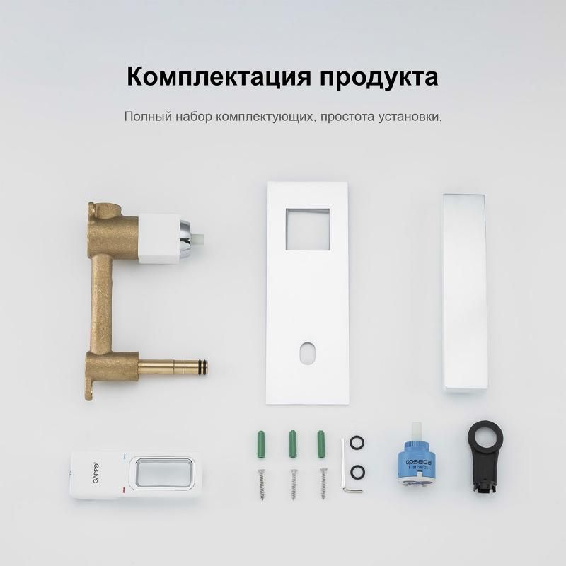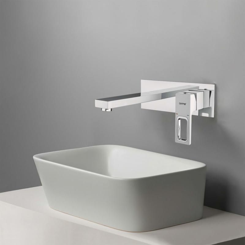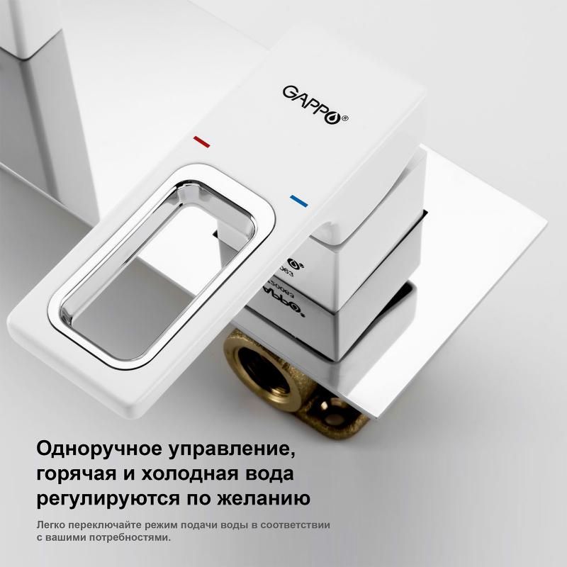 Смеситель для умывальника Gappo G1017-12 располагается на стене. Раковина должна быть без отверстия под смеситель. Окрашен в белый цвет, а корпус из латуни. Высоту размещения смесителя можно выбрать самому. Крепления и подводки в комплекте.