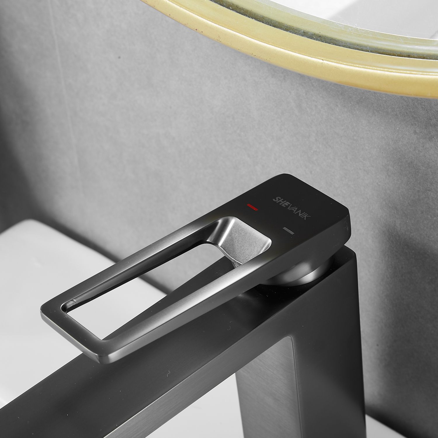 Смеситель для раковины Shevanik S6801T однорычажный, с неповоротным изливом, оружейная сталь.
