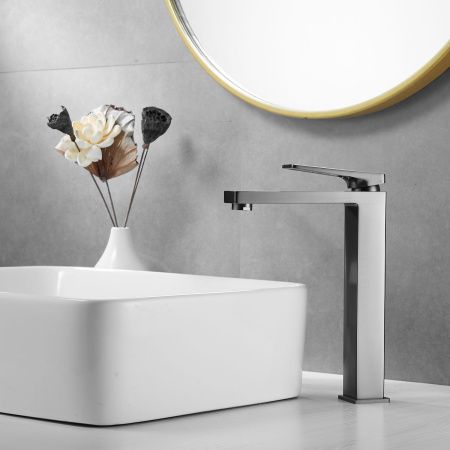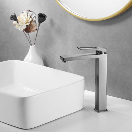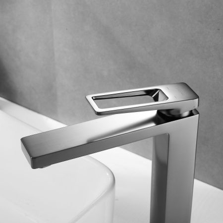 Смеситель для раковины Shevanik S6811T однорычажный, с неповоротным изливом, оружейная сталь.