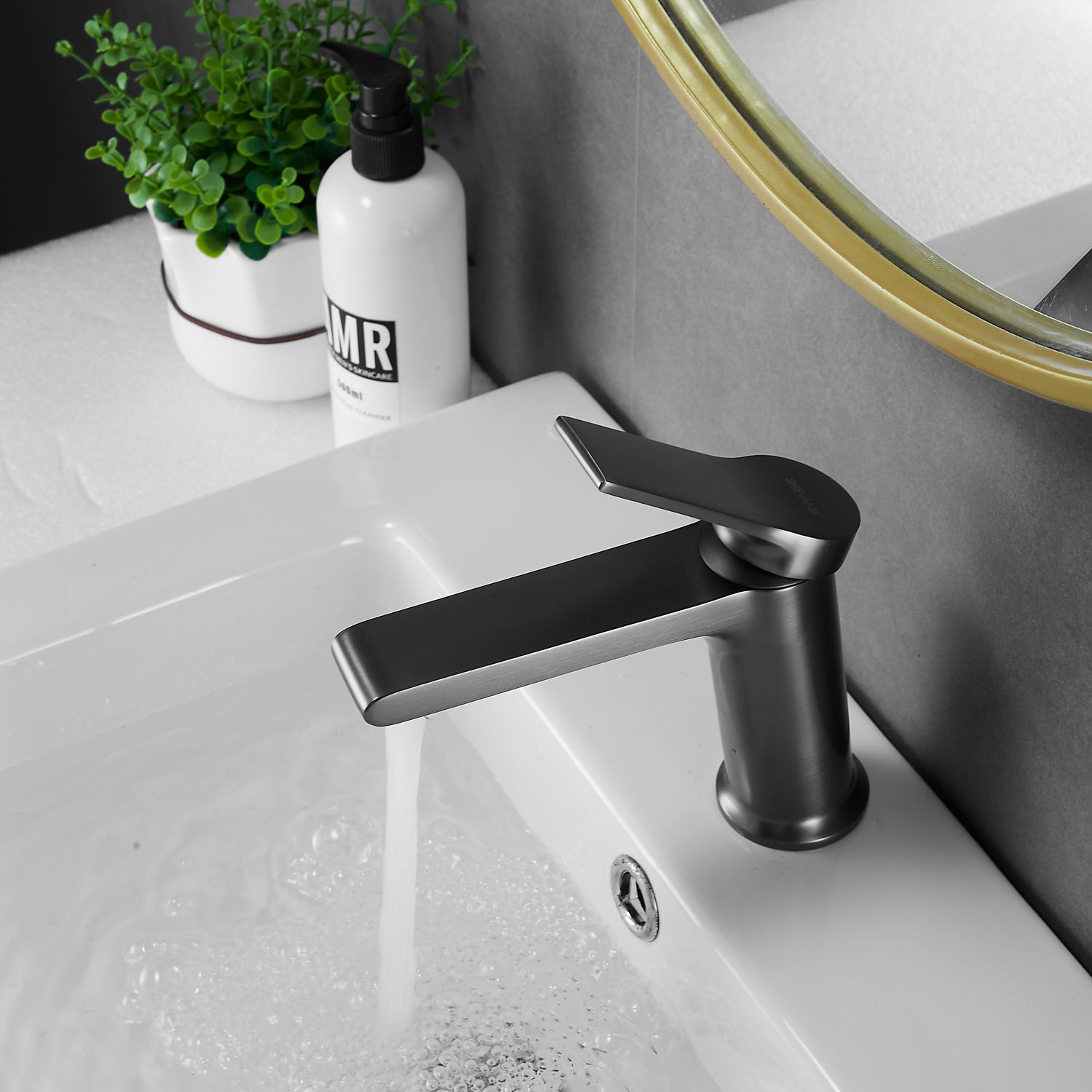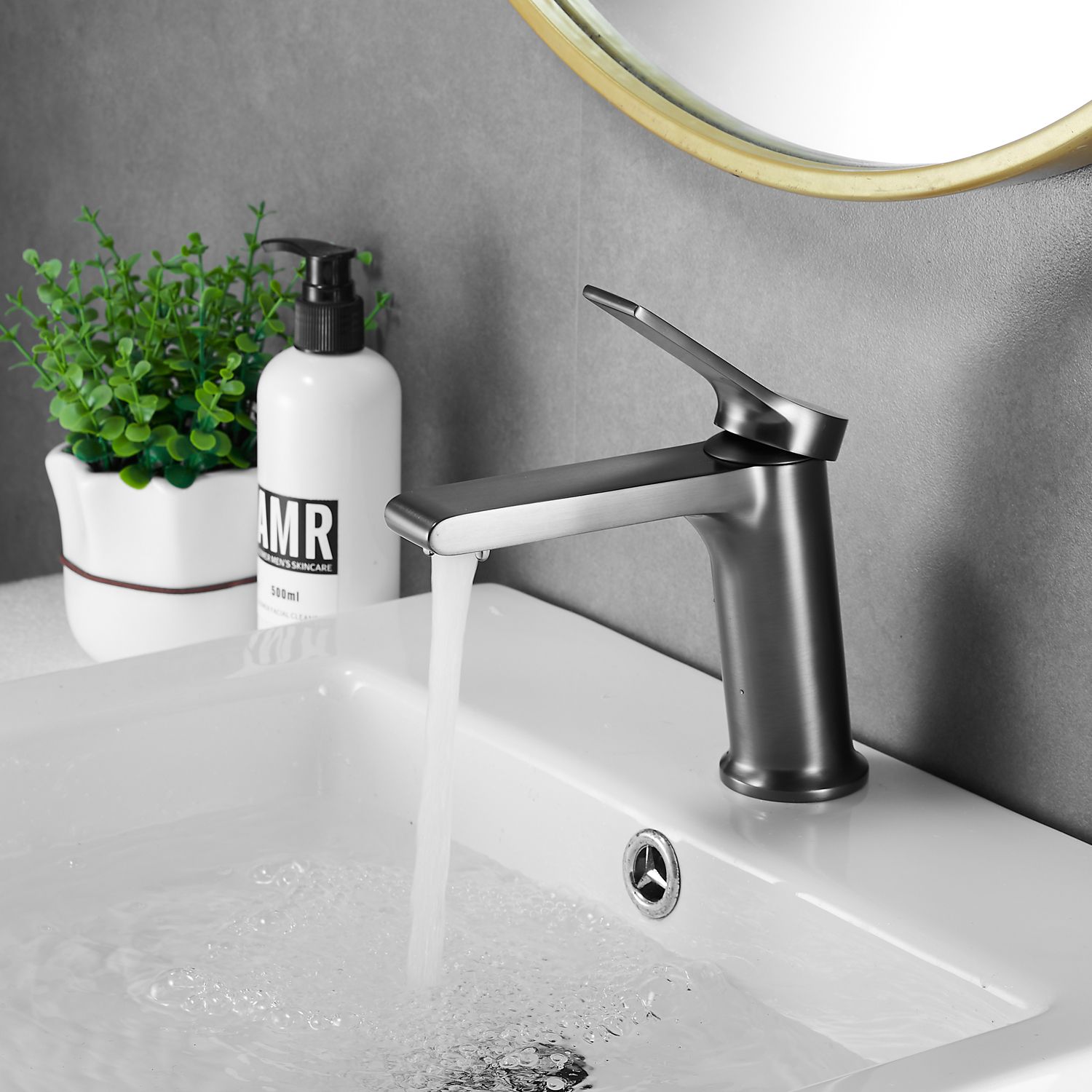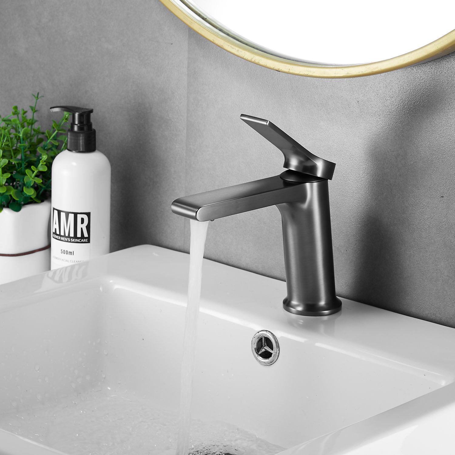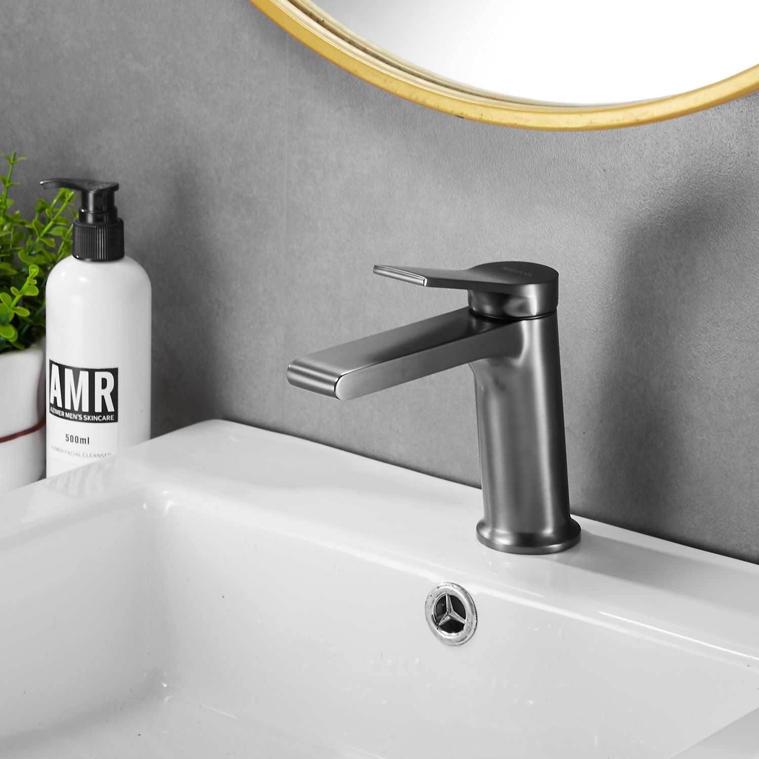 Смеситель для раковины Shevanik S8301T однорычажный, с неповоротным изливом, оружейная сталь.