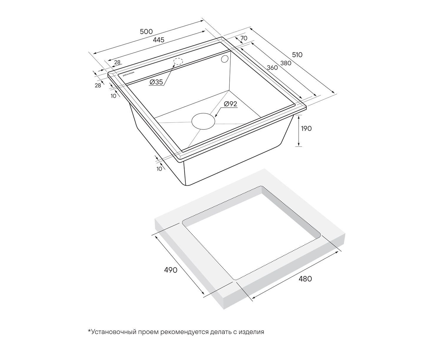 - Габариты (ДхШхВ): 510 х 500 х 190 мм