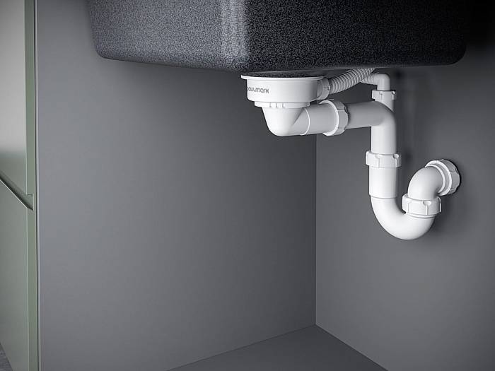 - S-образный телескопический сифон с подключением посудомоечной машины (ПММ);
