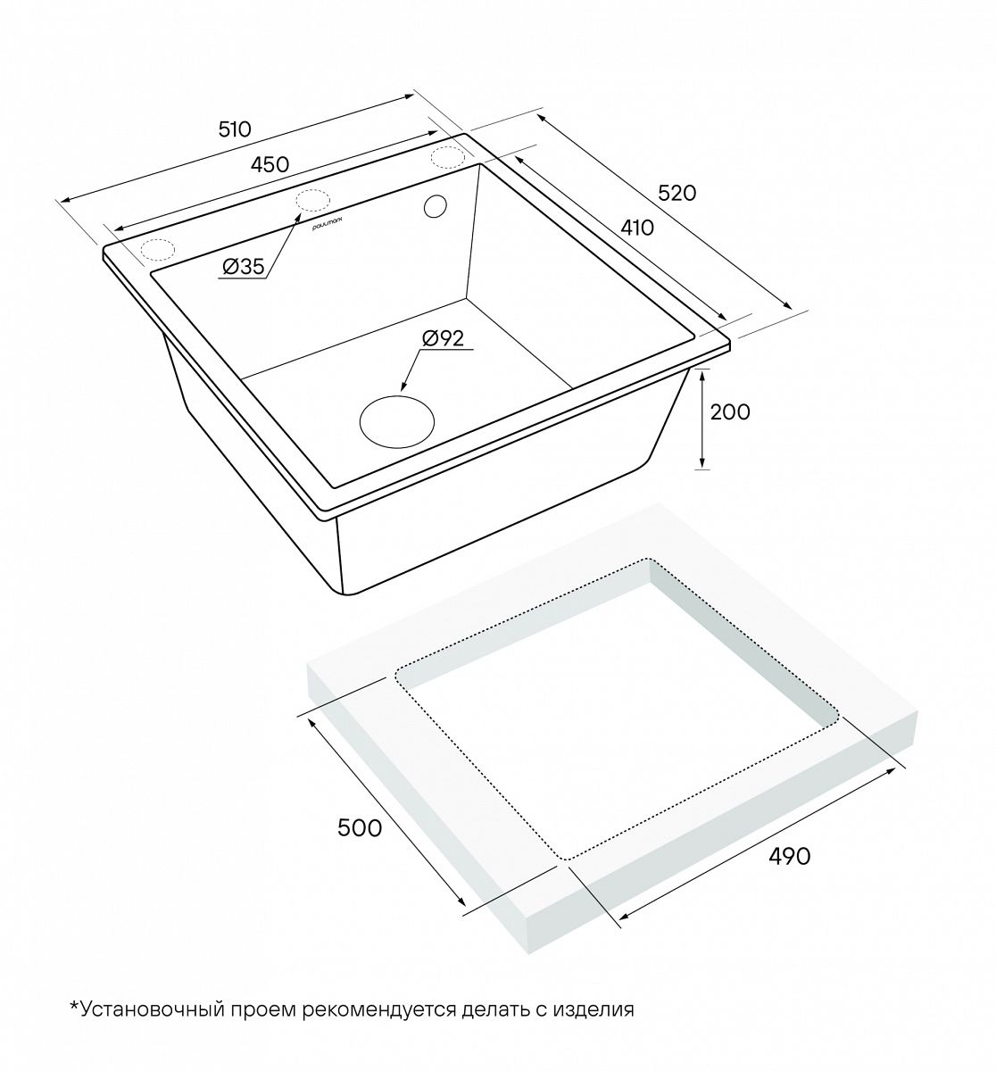 - Размер чаши (ДхШхВ): 410 х 450 мм х 190 мм