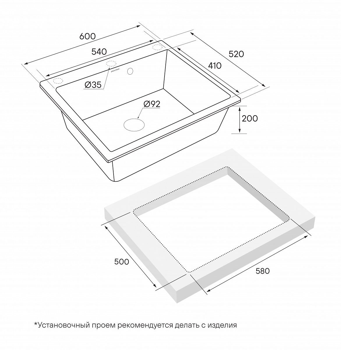 - Размер чаши (ДхШхВ): 410 х 540 х 190 мм