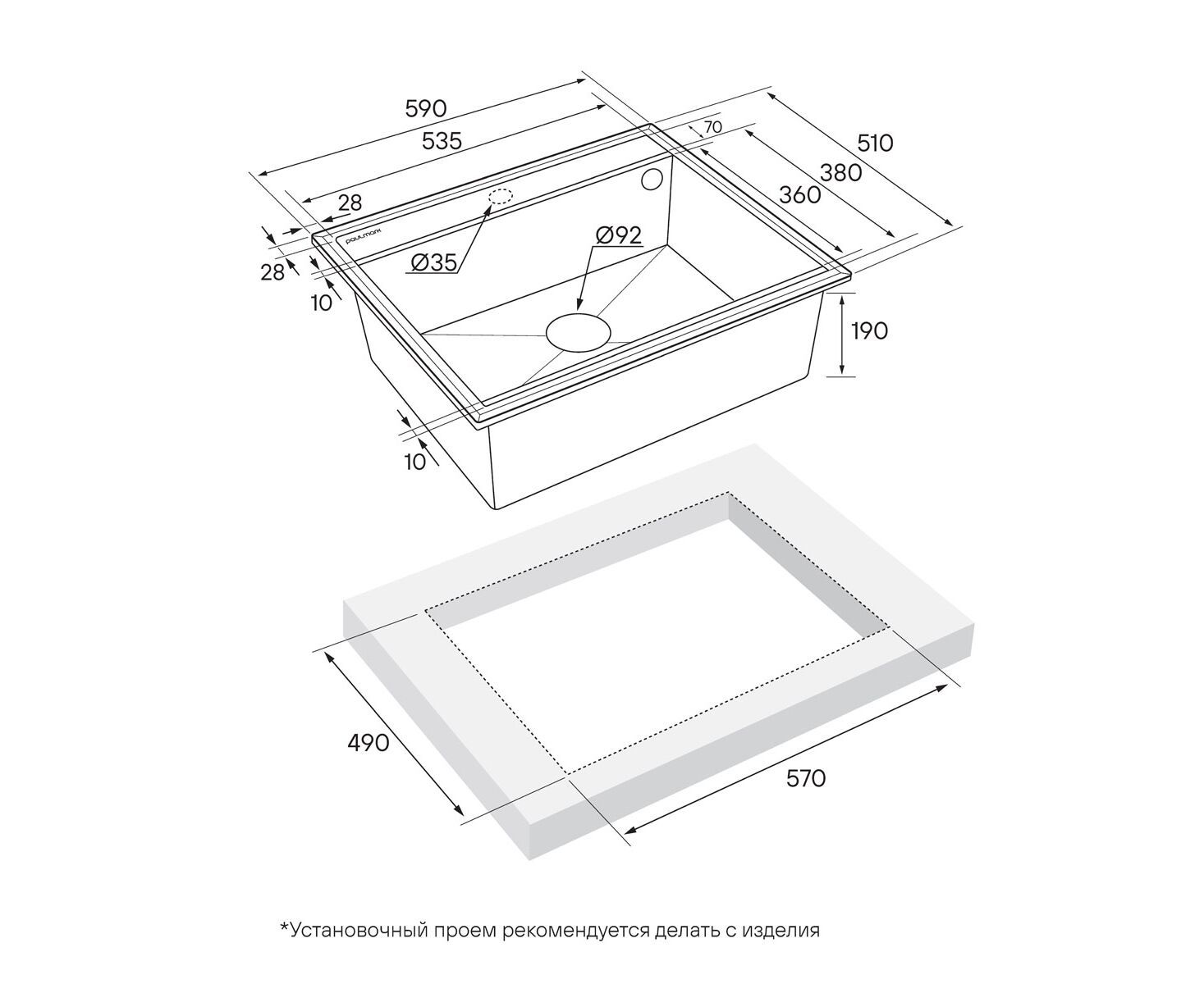 - Размер чаши (ДхШхВ): 360 х 535 х 180 мм