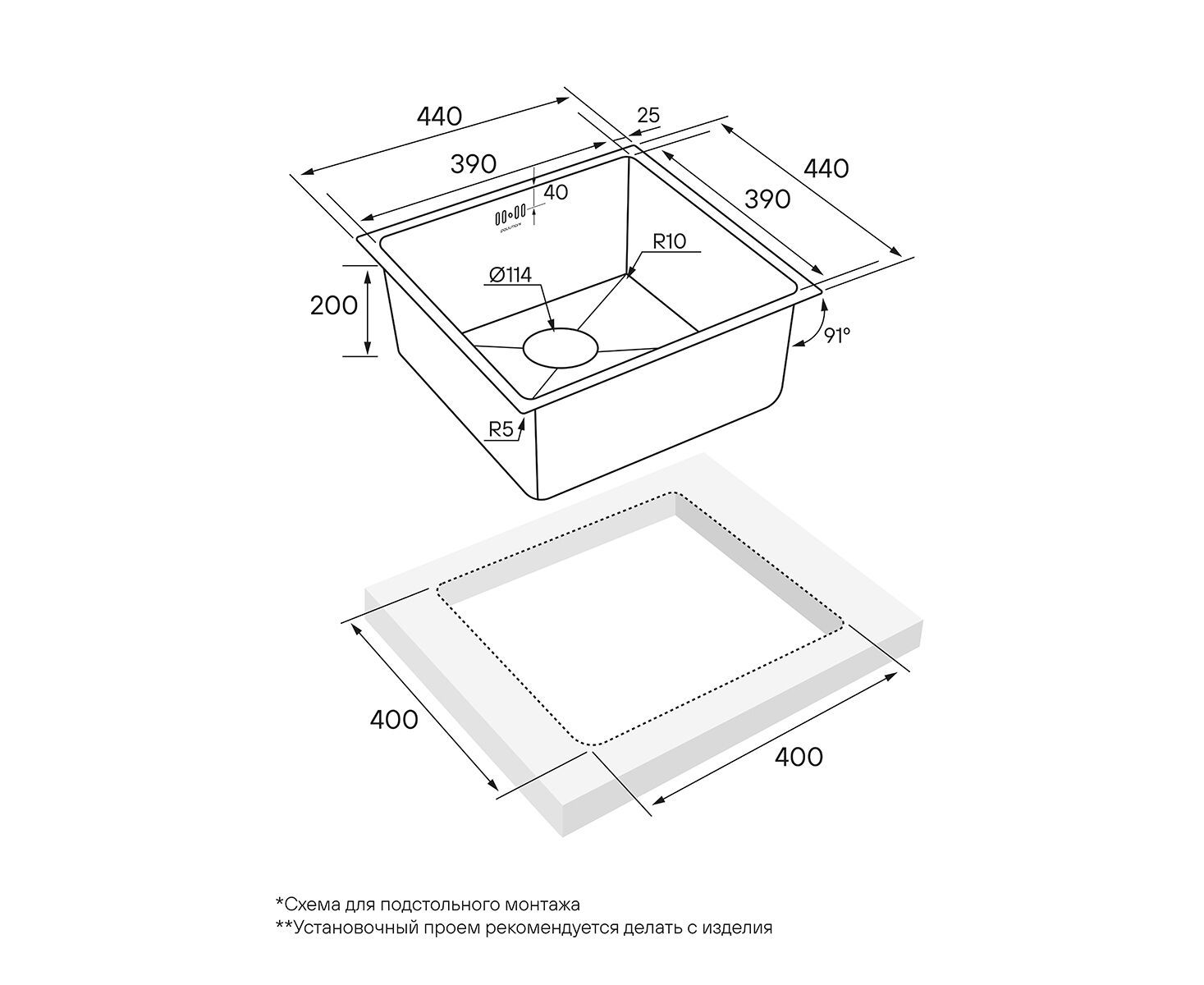 - Габариты (ДхШхВ): 440 х 440 х 200 мм