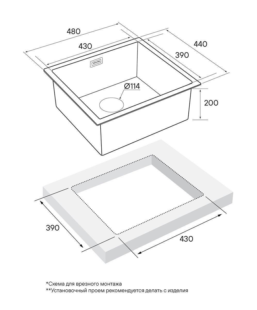 - Размер чаши (ДхШхВ): 390 х 430 х 190 мм
