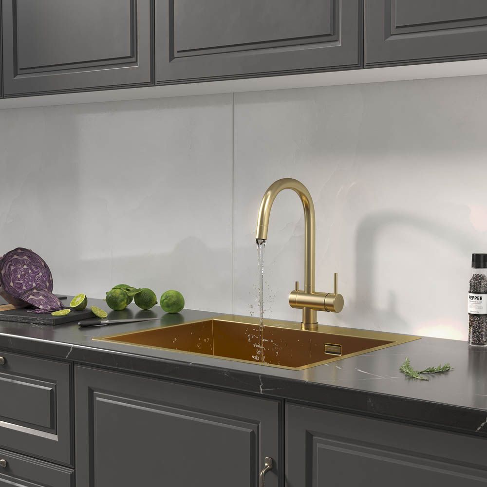 - Кухонные мойки: изготавливаются из нержавеющей стали AISI-304 или композитных материалов. Модели отличаются прочностью, функциональностью и разнообразием дизайнов — от классических до современных.