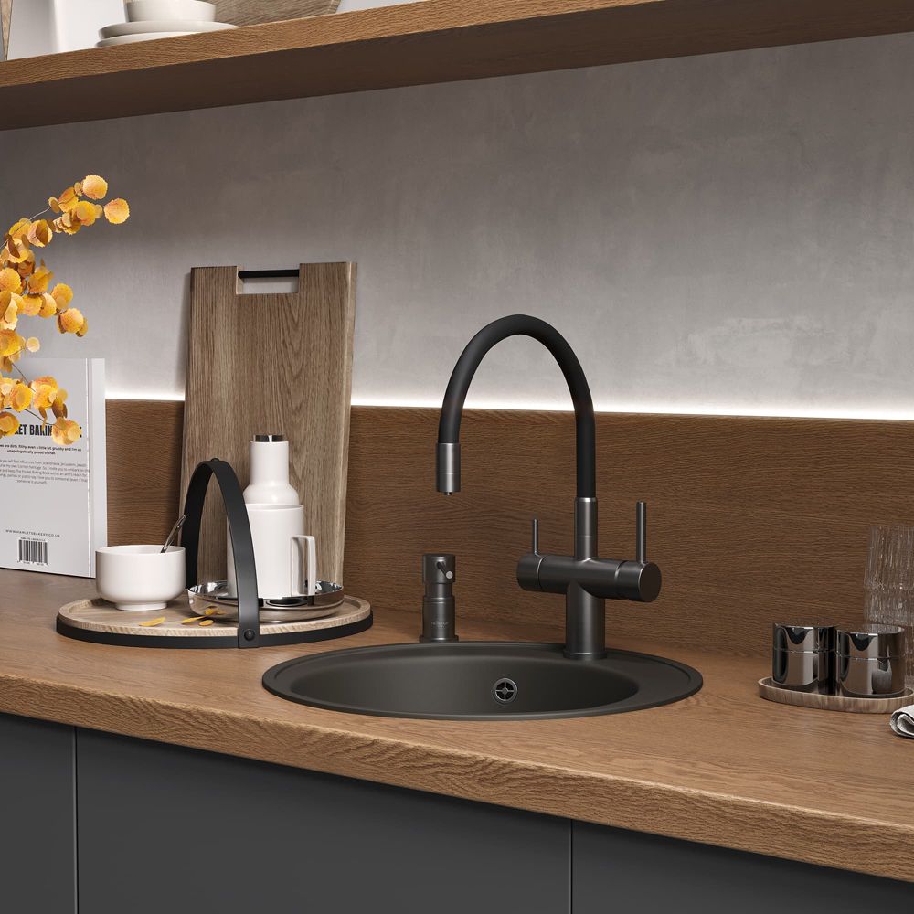 - Кухонные мойки: изготавливаются из нержавеющей стали AISI-304 или композитных материалов. Модели отличаются прочностью, функциональностью и разнообразием дизайнов — от классических до современных.