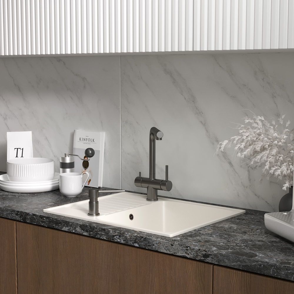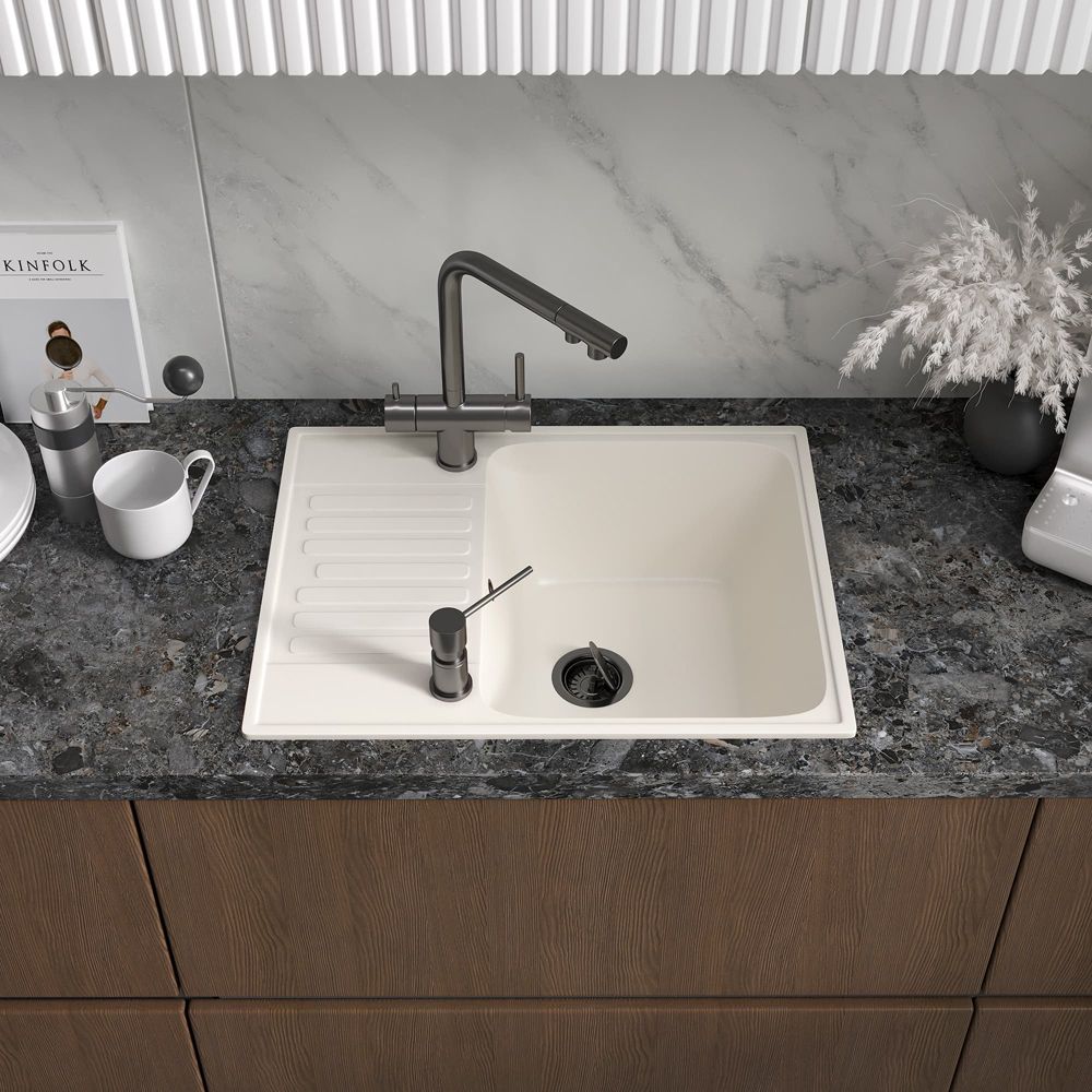 - Кухонные мойки: изготавливаются из нержавеющей стали AISI-304 или композитных материалов. Модели отличаются прочностью, функциональностью и разнообразием дизайнов — от классических до современных.
