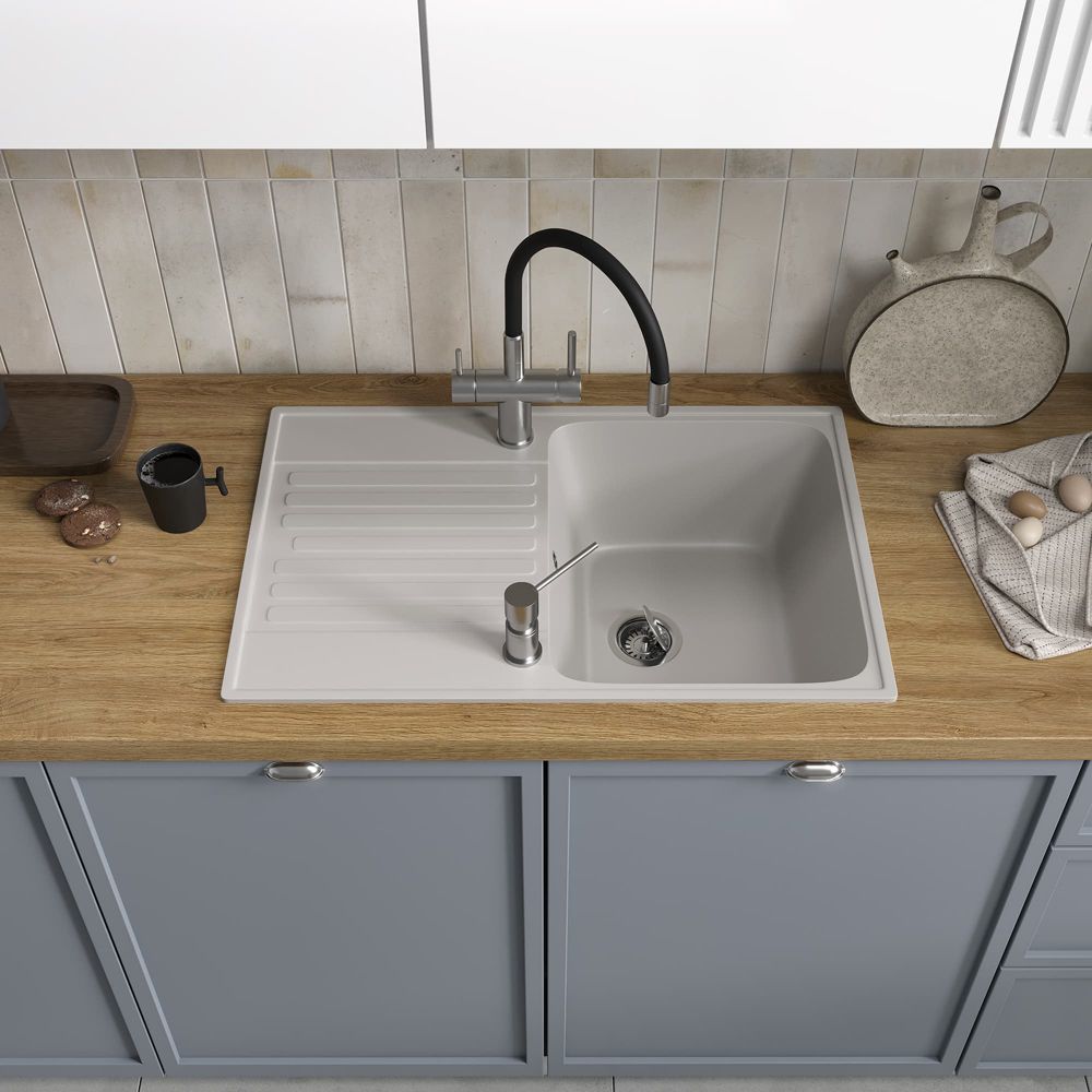 - Кухонные мойки: изготавливаются из нержавеющей стали AISI-304 или композитных материалов. Модели отличаются прочностью, функциональностью и разнообразием дизайнов — от классических до современных.
