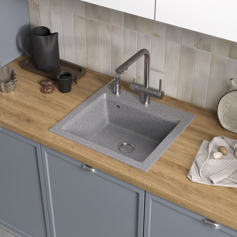- Кухонные мойки: изготавливаются из нержавеющей стали AISI-304 или композитных материалов. Модели отличаются прочностью, функциональностью и разнообразием дизайнов — от классических до современных.