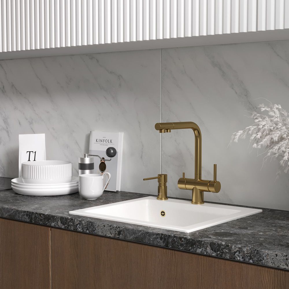 - Кухонные мойки: изготавливаются из нержавеющей стали AISI-304 или композитных материалов. Модели отличаются прочностью, функциональностью и разнообразием дизайнов — от классических до современных.