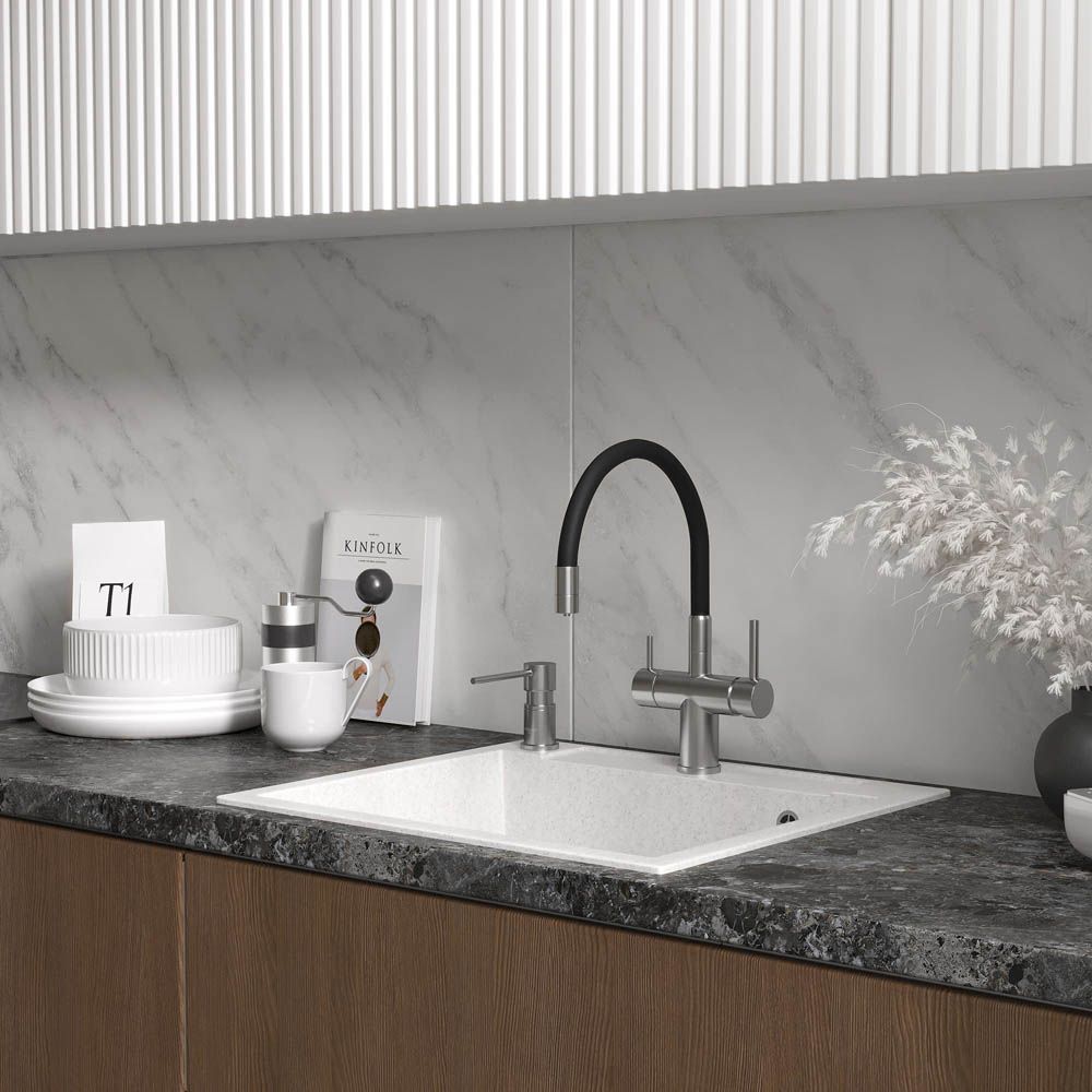 - Кухонные мойки: изготавливаются из нержавеющей стали AISI-304 или композитных материалов. Модели отличаются прочностью, функциональностью и разнообразием дизайнов — от классических до современных.