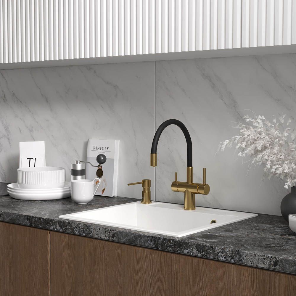- Кухонные мойки: изготавливаются из нержавеющей стали AISI-304 или композитных материалов. Модели отличаются прочностью, функциональностью и разнообразием дизайнов — от классических до современных.