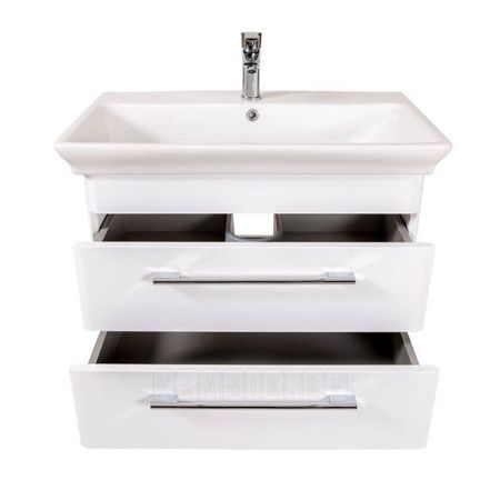 Свойства. Тип тумба под умывальник; Материал МДФ; Установка подвесная; Цвет белый; Умывальник в комплекте: да; Ширина 81 см; Глубина 49 см; Высота 85 см.