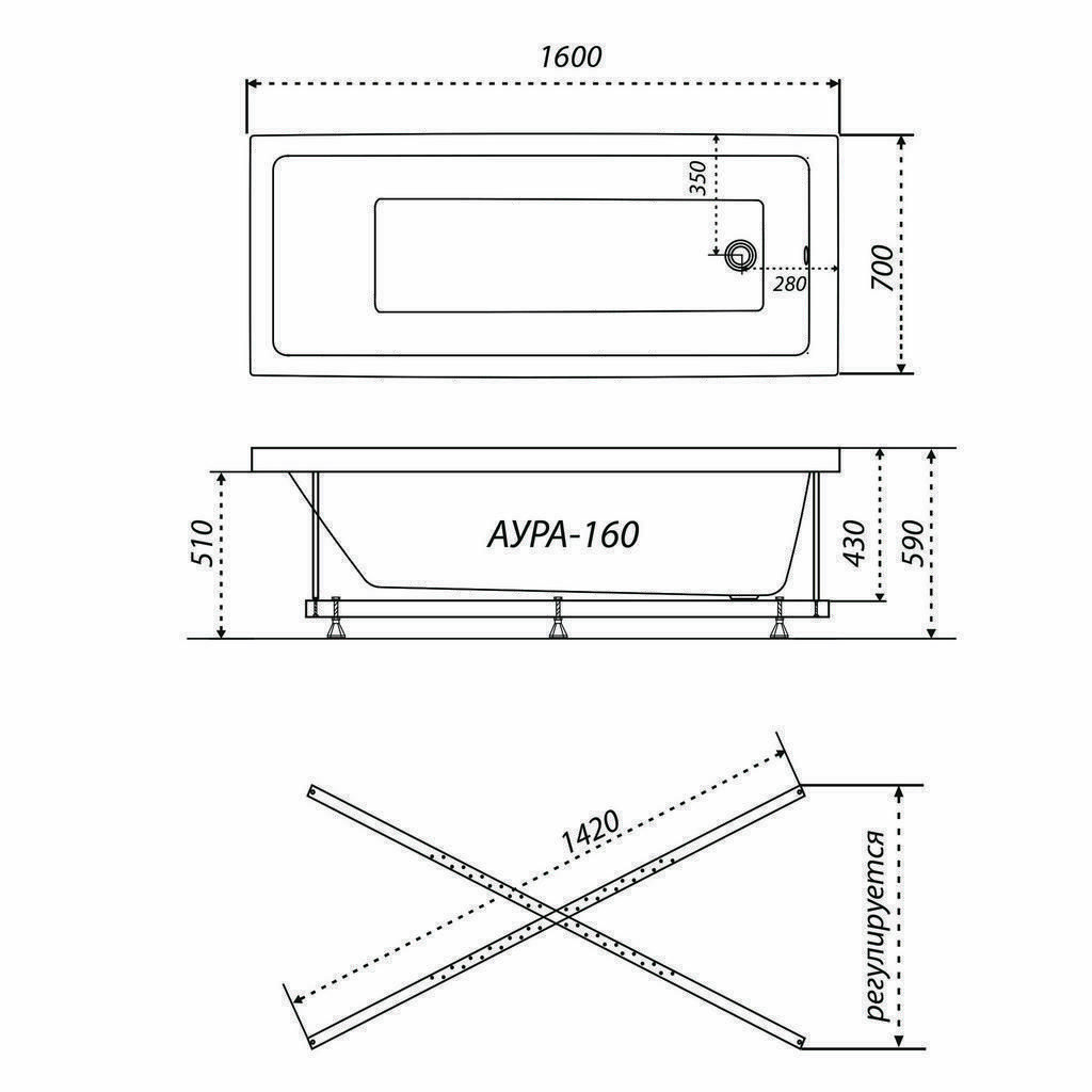 Каркас усиленный для прямоуг. ванн Triton 140-170х70-75, универс. 5 опор |