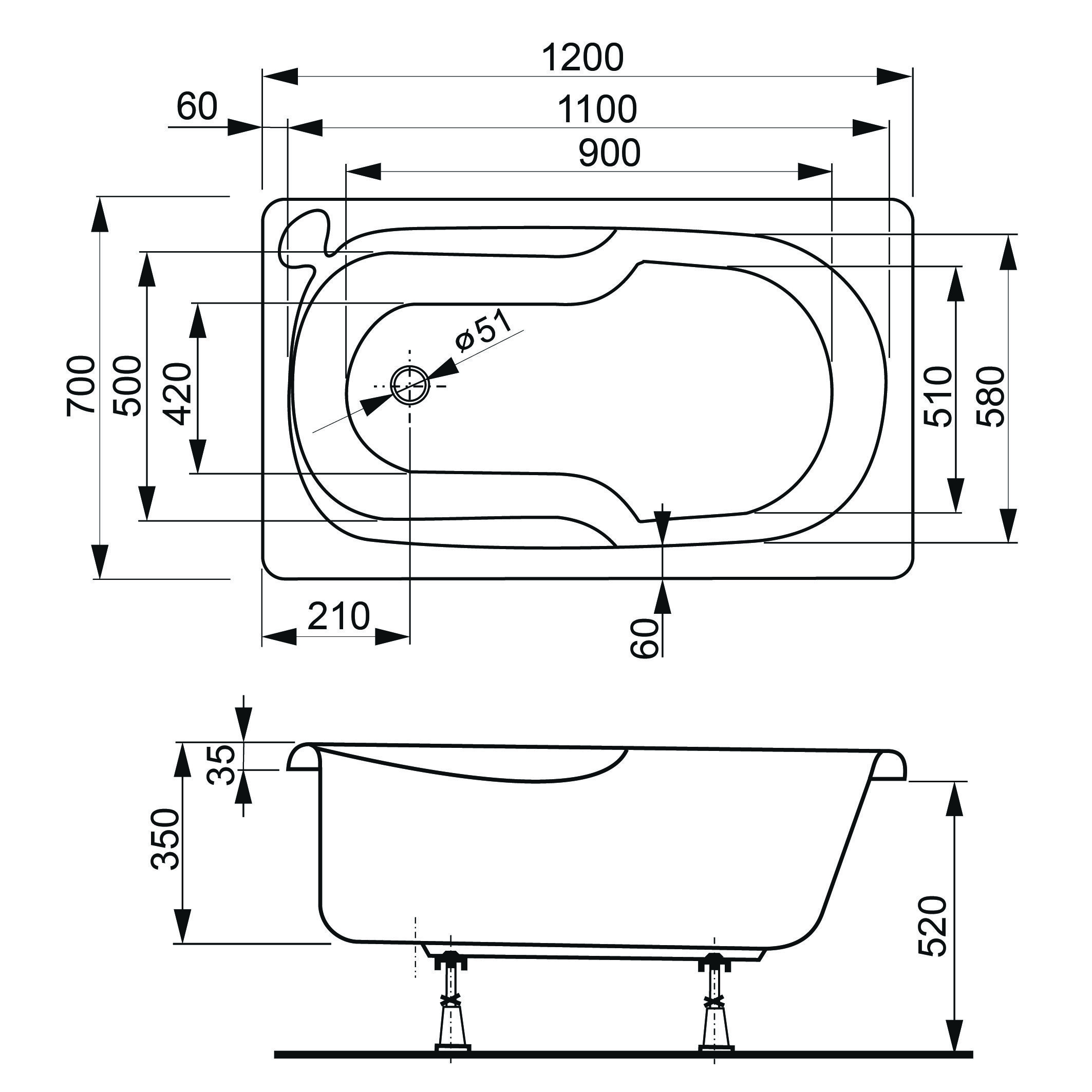 Наименование: Акриловая ванна VAGNERPLAST NIKE 120x70;