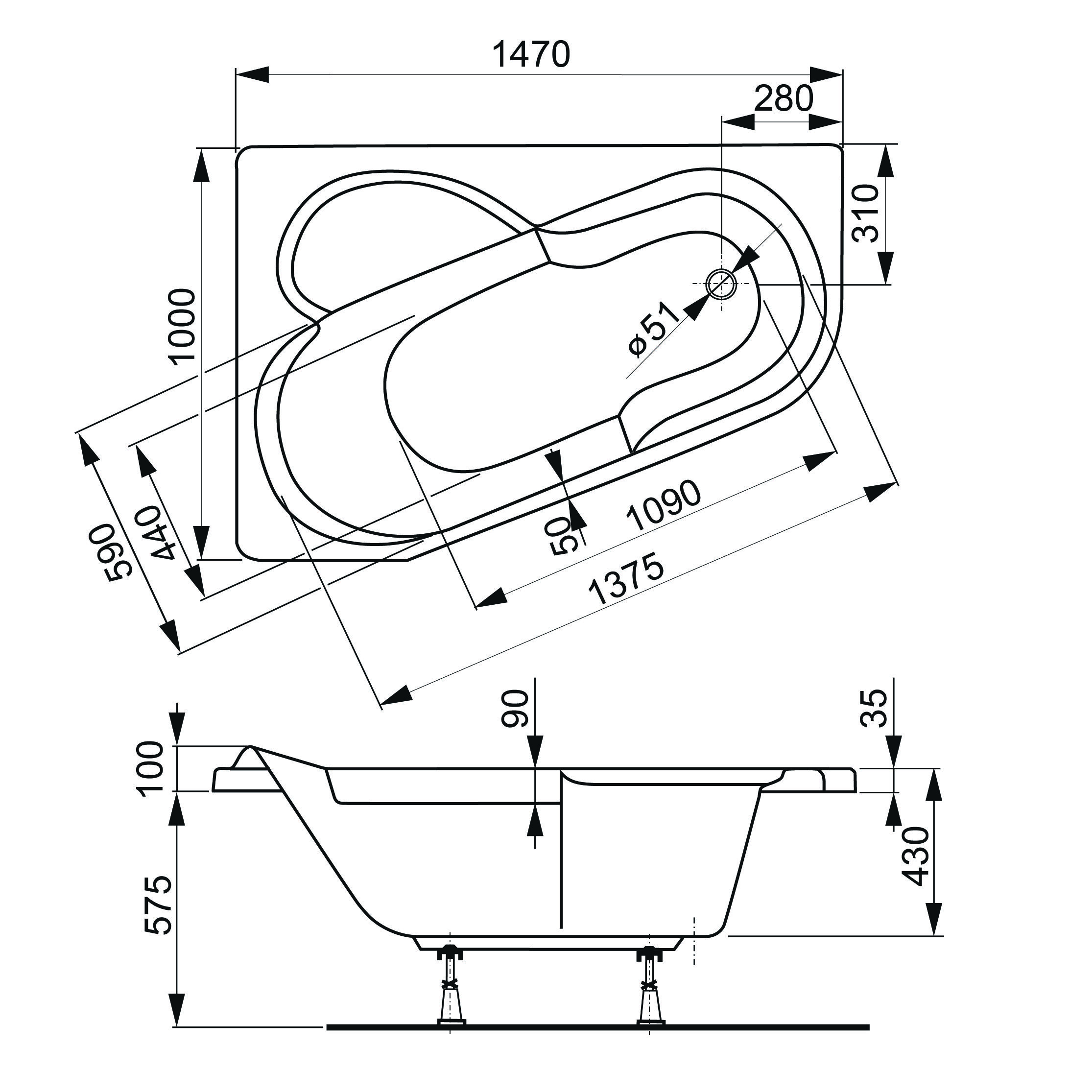 Наименование: Акриловая ванна VAGNERPLAST SELENA 147x100 Right;